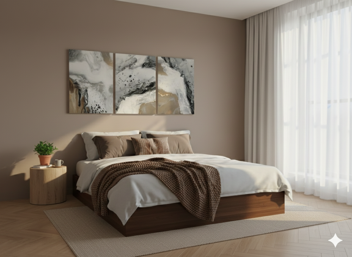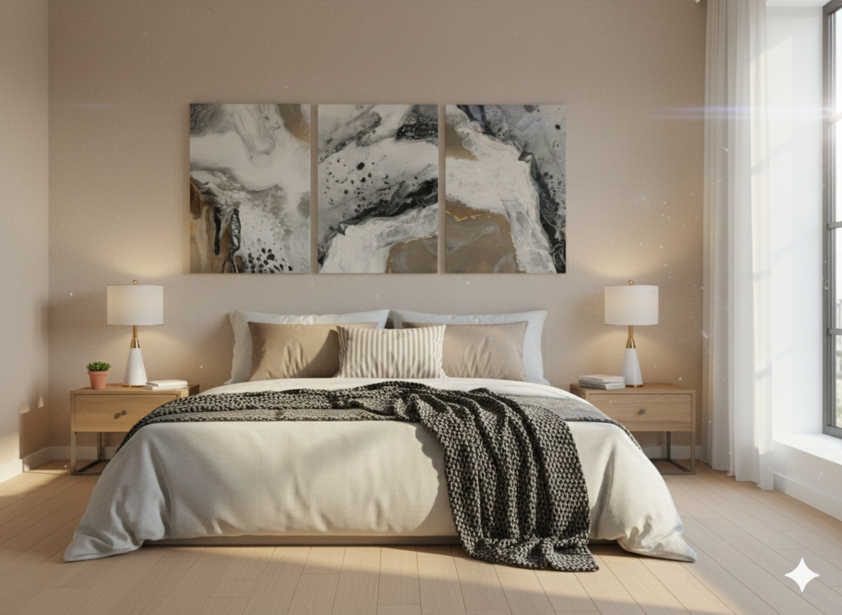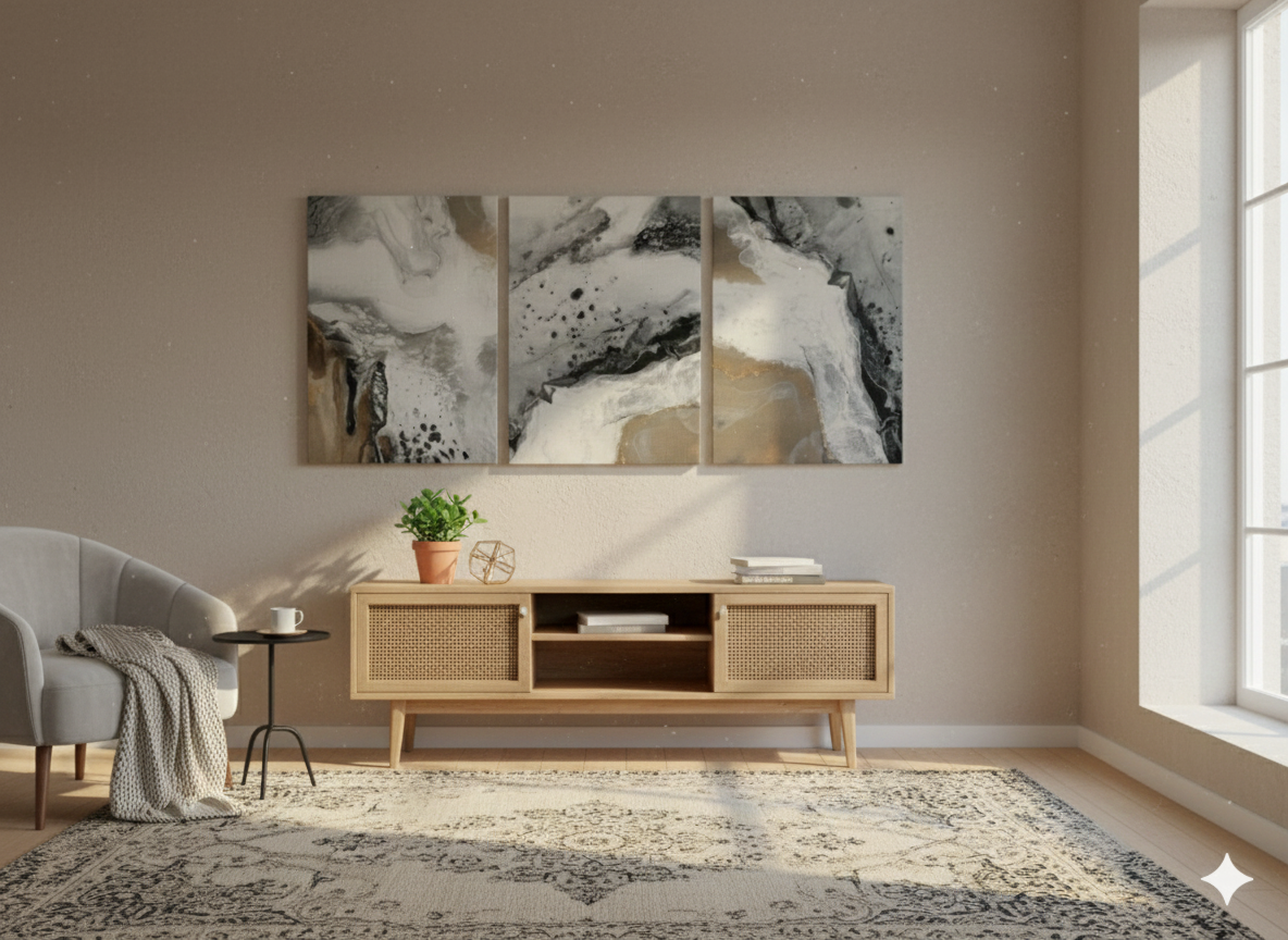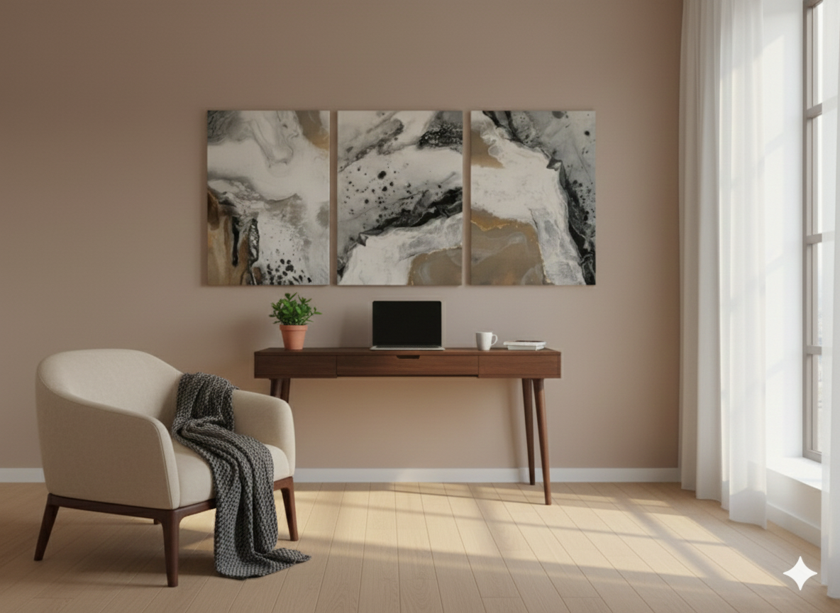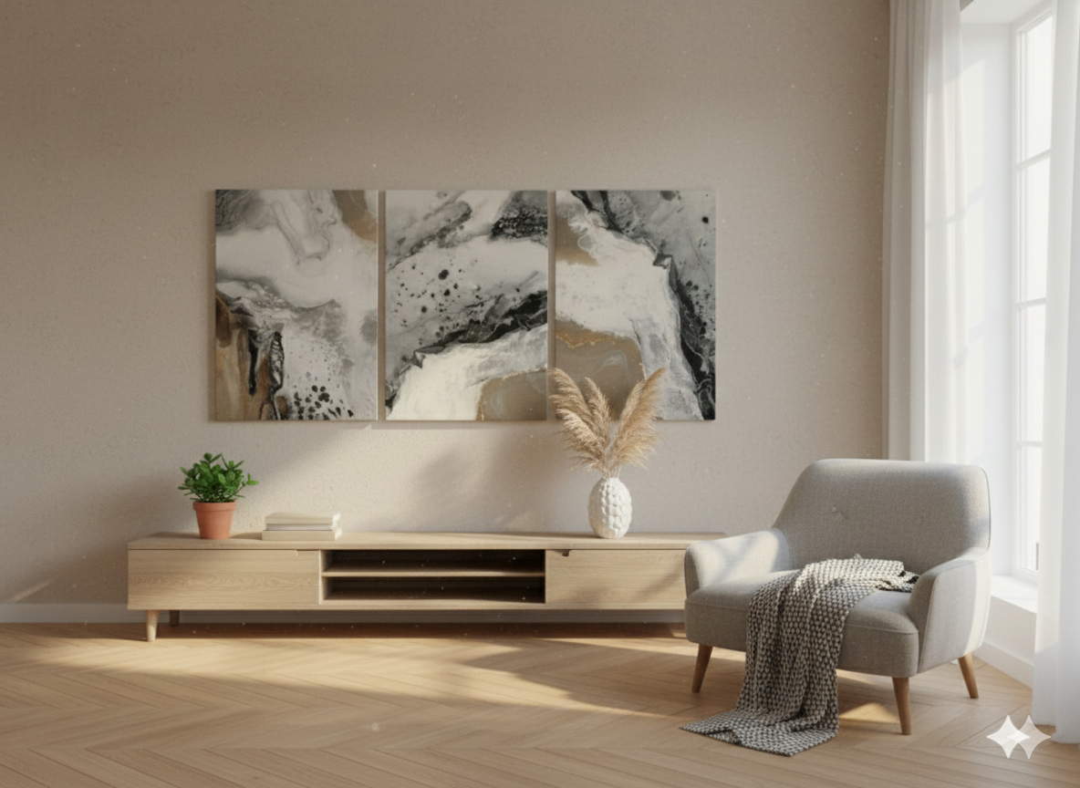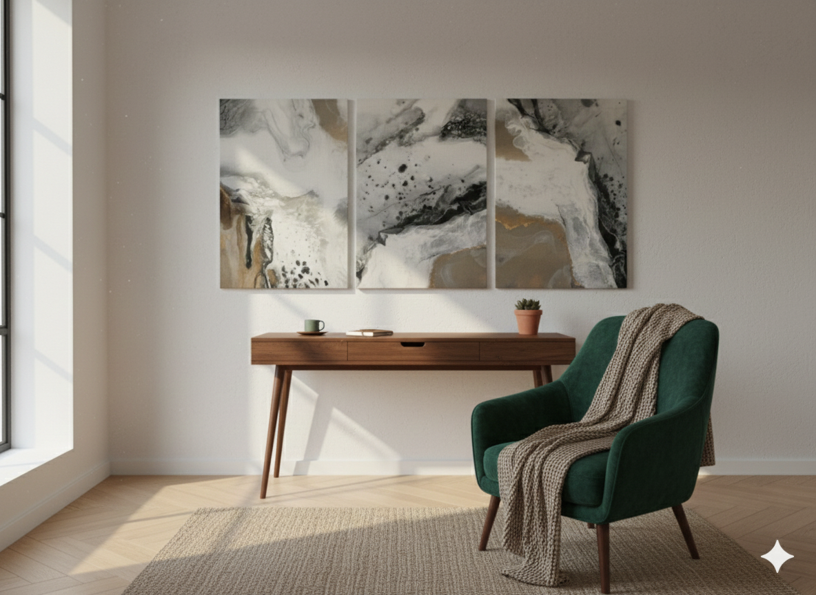 3’lü Modern Kanvas Duvar Tablosu – Altın | Salon & Yatak Odası Tablosu