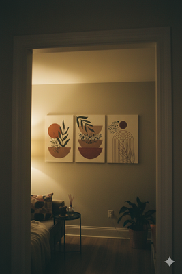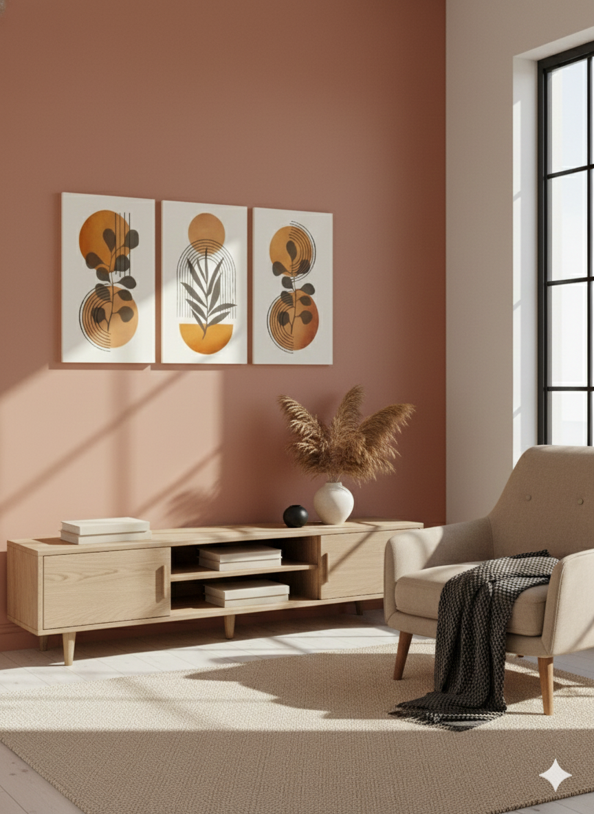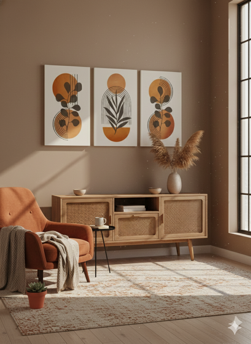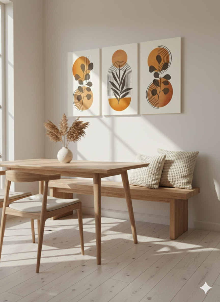 Gün, sıcak turuncu ve sarı tonlarının modern çizgiler ve botanik siluetlerle birleştiği enerjik bir üçlü kanvas tablo setidir. Güneşin doğuşunu andıran parlak tonlar, yaşam alanına canlılık, pozitiflik ve aydınlık bir atmosfer kazandırır.