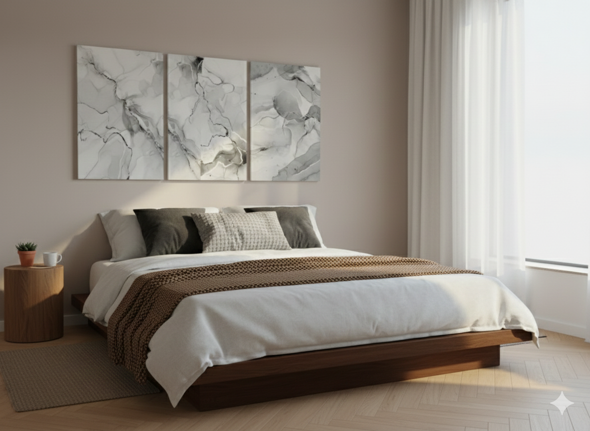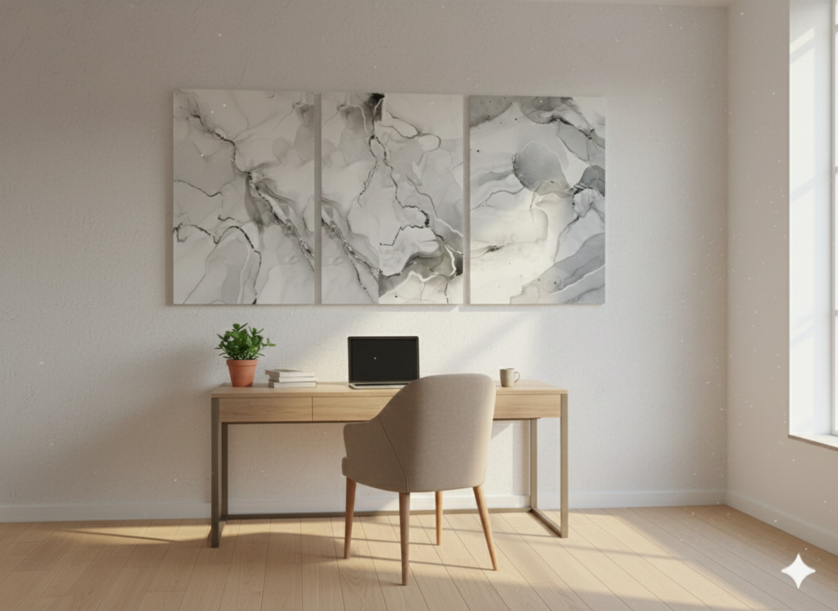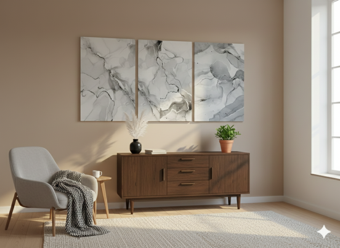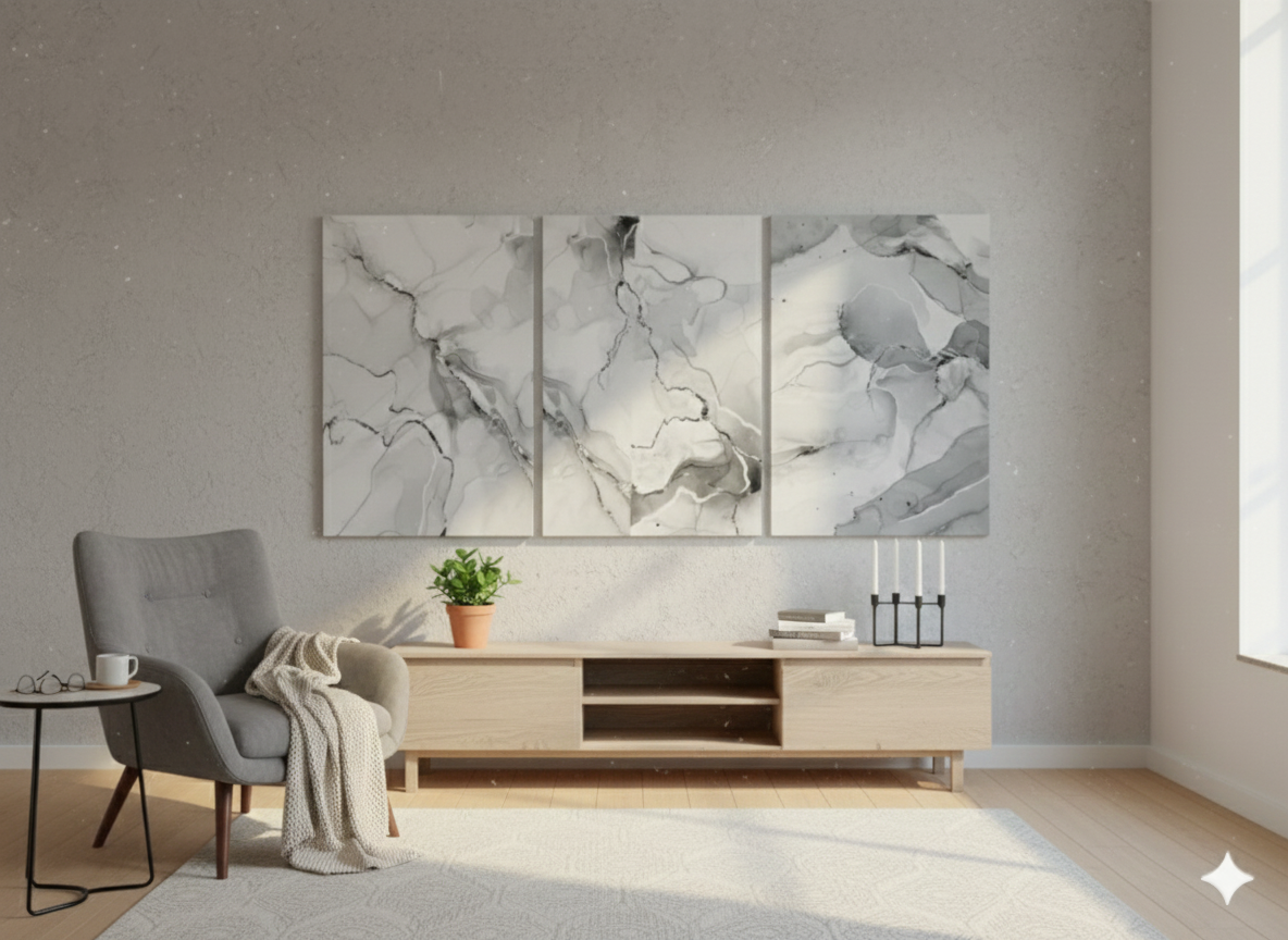 3’lü Modern Kanvas Duvar Tablosu – Mermer | Salon & Yatak Odası Tablosu
